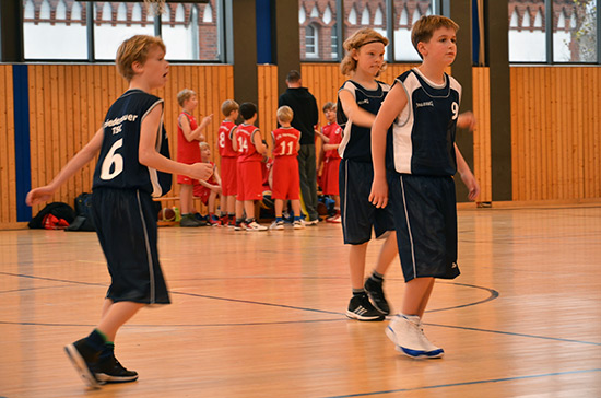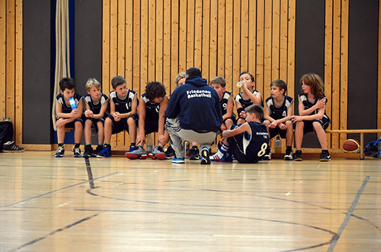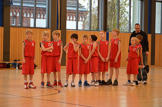 Irgendwie aus dem Nichts sind im Berliner Jahrgang 2004 die Hermsdorfer unter den Fortgeschrittenen auf den Plan getreten. Schon beim Berliner Miniturnier tat sich unsere Mannschaft schwer gegen diesen Gegner, der strukturierten Basketball spielt und über einige flinke Spieler in den eigenen Reihen verfügt. Entsprechend holperig verliefen die ersten Zehntel für unsere U11, die nur langsam in Gang kam. Es sollte bis zum dritten Zehntel dauern bis unser Team allmählich die Kontrolle übernahm. Beim Stand von 33:20 für Friedenau ging es in die Pause. Zwar erwischte Hermsdorf den besseren Start im zweiten Abschnitt, aber unsere Jungs ließen nichts mehr anbrennen und bauten den Vorsprung sukzessive aus, so dass es am Ende einen verdienten 72:50-Sieg gab.